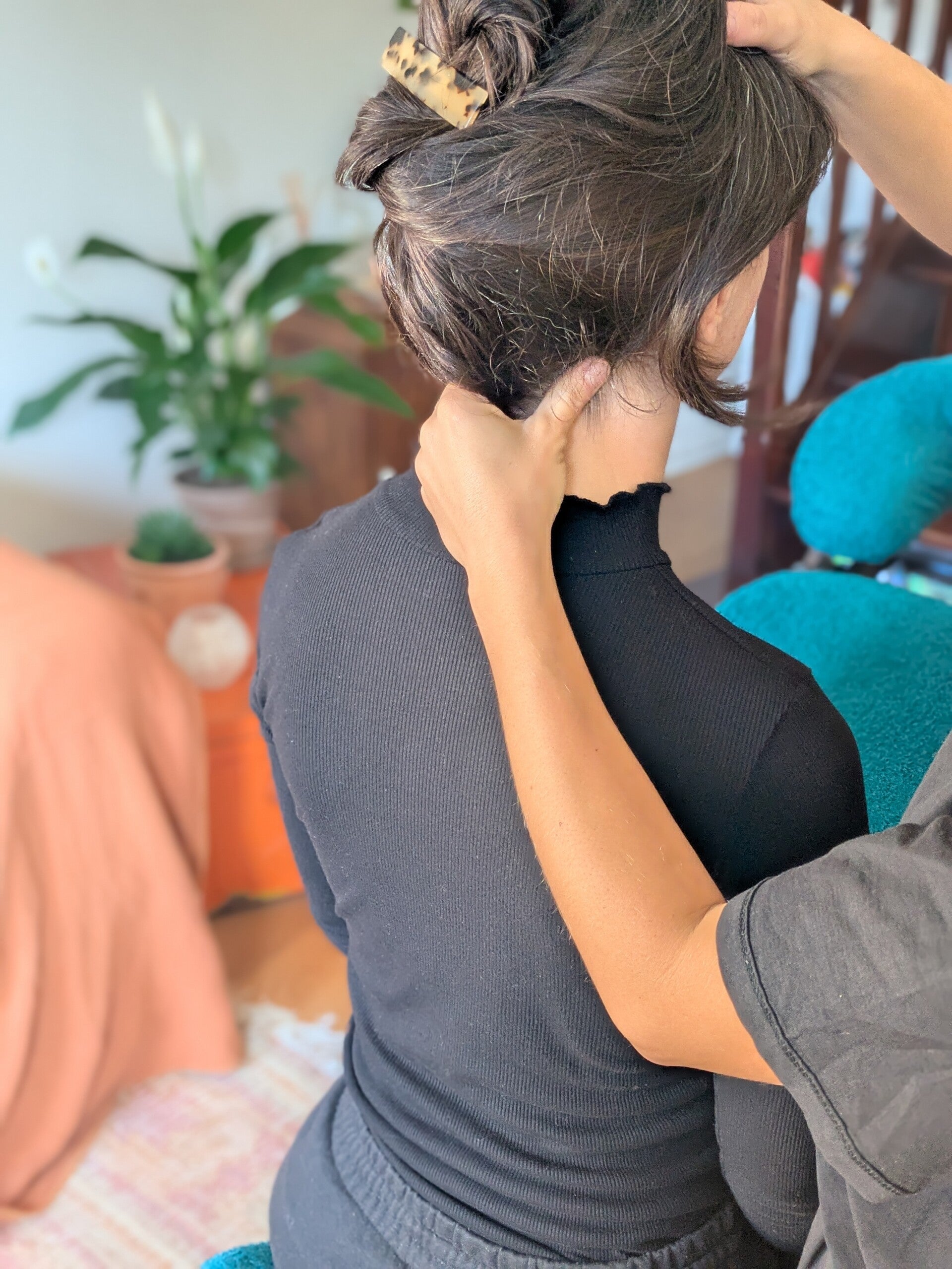 Ce massage sur chaise ergonomique travaille sur tout le haut du corps (dos, nuque, épaules, bras, mains, crâne) pour relâcher les tensions et retrouver de la légèreté et de la mobilité.